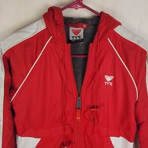 TYR Aliance Swim red and white parka coat Size small Athletic Warm Active