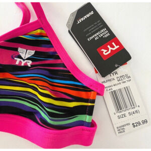 New with Tags, TYR Women's DuraFast One Fresno Mojave TieBack Swim Top, Purple/Multi, size Small 4-6, Retails $29.95.