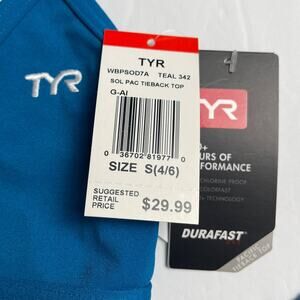 New with Tags, TYR Women's DuraFast One Solid Pacific TieBack Swim Top, Teal, size Small 4/6, Retails $29.95.