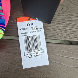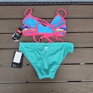 TYR Durafast Crosscut Tieback Bonzai Blue/multi Solid Turquoise Bikini Sz S New