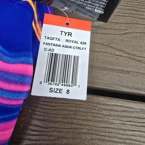 TYR Durafast Fantasia Scoop Neck Controlfit Multi/royal Women Swimsuit SZ 8 New