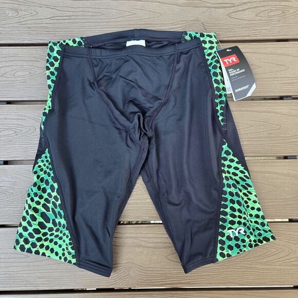 TYR Durafast Lite Swimsuit Swarm Men’s Jammer Black/ Green Sz 30 NEW