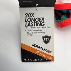 TYR Durafast One Pacific Tieback Bikini Swim Top Pineapple Print Black Orange XS