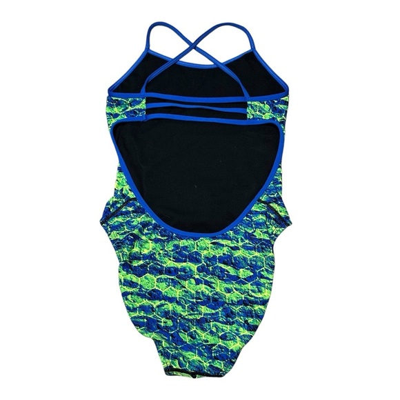 TYR Durafast One Pice Swimsuit Women's 32 Green Blue Diamondfit Team Training