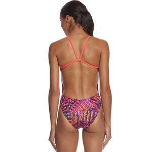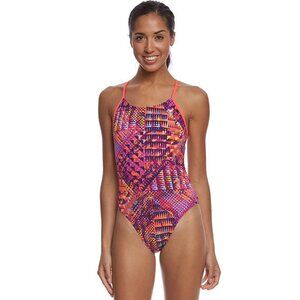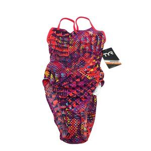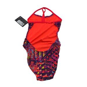 TYR Girls Machu Cutoutfit One Piece Swimsuit Open Back Purple Colorful 28