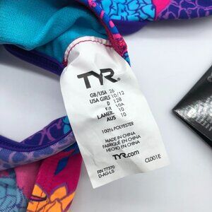 TYR Girls Panama Valleyfit One Piece Swimsuit Open Back Pineapples Pink Blue 26