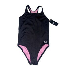 TYR Girls Solid Maxfit Swimsuit Size L (10/12) Black/Pink