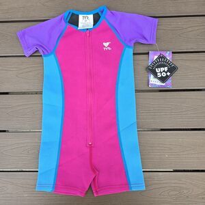 TYR Girls Solid Thermal Swim Suit Zip up Purple Pink Blue Size 7/8 New