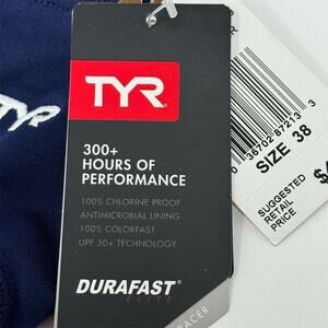Keywords: TYR Swim Briefs, Men's Swimwear, Competition Swim Bottoms, Chlorine-Resistant Swimwear, Antimicrobial Swim Briefs, Colorfast Swimming Gear, UPF 50+ Swim Protection, Durable Swim Briefs, Polyester Spandex Swimwear, Men's Size 38 Swim Briefs, Blue Color Block Swimwear, Regular Size Swim Briefs, Men's Performance Swimwear, Athletic Swim Briefs, New with Tags Swimwear