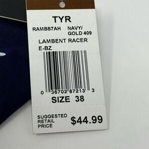 TYR Lambent Racer Swim Brief Men's Navy/Gold Chlorine-Resistant Size 38