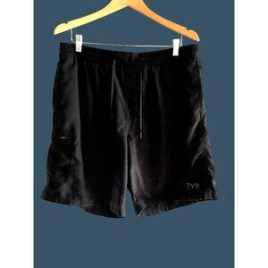TYR Men's Black Swim Trunks with Elastic Waist & Drawstring Size XL