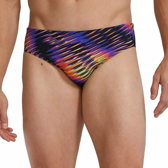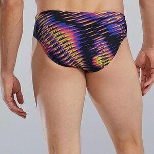 NWT TYR men's Durafast Elite brief swimsuit, lime multi, size 32.