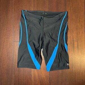 TYR Men’s Swim Jammer – Black with Blue Accents – Size M/L