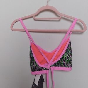 TYR Pink Green and Black Crosscut Tieback UPF 50+ Bikini Top Size Large New