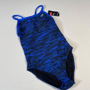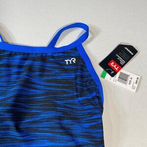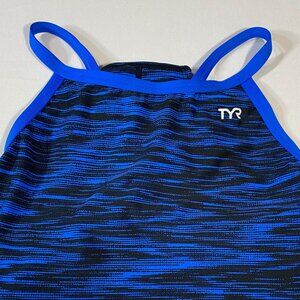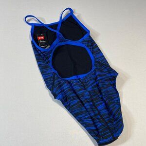 TYR Size 36 Fizzy Diamondfit Blue Athletic Swimsuit Cross Back Design