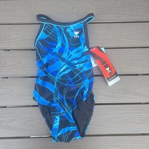 TYR Sonic Wave 1pc Swimsuit - Blue Lycra Youth Girls Size 22 New