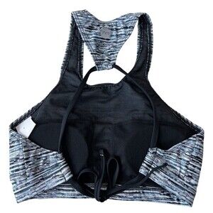 TYR Sports Bra Swim Top Tie Open Back Gray Blue Black Marled Size Small SAMPLE