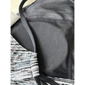 TYR Sports Bra Swim Top Tie Open Back Gray Blue Black Marled Size Small SAMPLE Chest measured flat across front pit to pit 13" Length 13" Lots of stretch Thin, Removable Pads