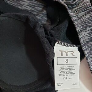 TYR Tankini Swim Top 8 Black Gray Lightly Padded Cups, Like New