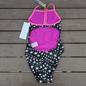 TYR The Finals Women Starbright Foil Swimsuit Wing back Black/silver Size 30 New
