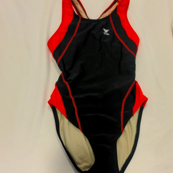 Size 32 (extra small) classic TYR training and racing swim suit. Black with red accent and stitching. Great condition, no chlorine damage or thin spots.