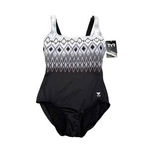 TYR Women's Baltic Stripe Aqua ControlFit Swimsuit TAQBS7A Black, Size 10, $80
