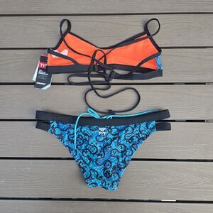 TYR Womens Blue/black Burano Crosscutfit Tie Workout Bikini Set Sz S New