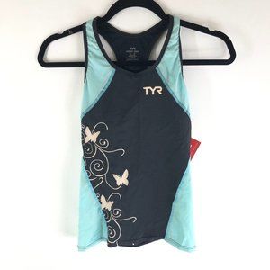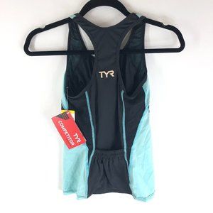 TYR Womens Competitor Triathalon Top Moisture Wick UPF 50+ Pocket Black Blue XS