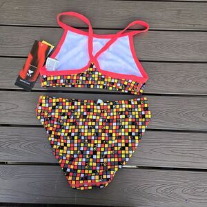 TYR Womens Durafast Orange/Red Team Check Diamondfit Workout Bikini Sz XXS NEW