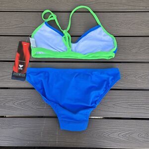 TYR Womens Durafast Solid Microback Blue/green Workout Bikini Set Sz 36 M NEW