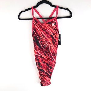 TYR Womens One Piece Swimsuit Diamondback Red Black 34 US M New with tags! Style Number: DPFLY7A Armpit to armpit: 13 Length: 27 Comes from a smoke free home.  Feel free to ask any questions you may have. Thanks for looking!