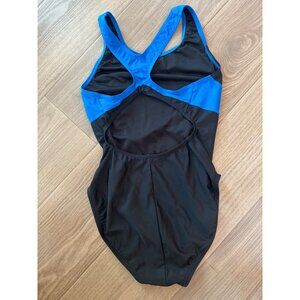 TYR Womens One-Piece Swimsuit Black & Blue Size 38 Open Back Racerback TYReco™ W