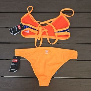 TYR Women's Orange Sassari Crosscutfit Tieback Workout Bikini Set Size XL New