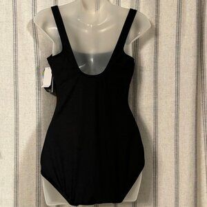 TYR Women's Solid Aqua Chlorine Resistant Controlfit U Back One Piece Swimsuit Size: 12 Color: Black Scoop back bathing suit Able to sustain 300+ hours of use Durable, flexible, and comfortable Full body power mesh control Circular knit construction 100% colorfastness Compressed fit Fabric: 94% Polyester, 6% Spandex Care: Hand wash cold. Line dry. Sun Protection: No Chlorine Resistant: Yes Back Style: U-back Cup Support: Soft cups Bottom Coverage: Moderate