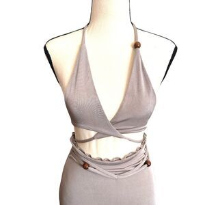 TYRELL Maxi Beaded Boho Skirt Set Grey XS