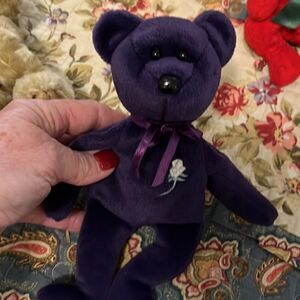 TY Beanie bear collection includes Valentina with tag, Princess no tag, Mistletoe with tag, shamrock Erin without tag, Beverly with tags. 5 Bears in the collection