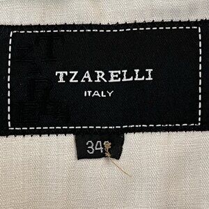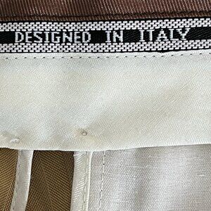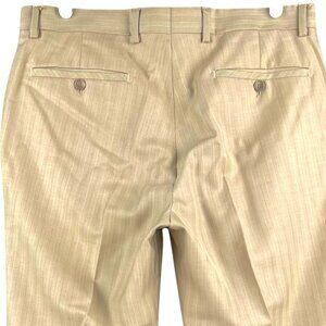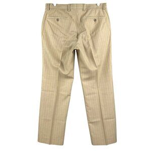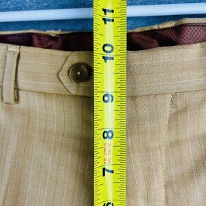 TZARELLI ITALY Men's Tan Wool Striped Dress Pants 34x27.5 Flat Front Straight Leg