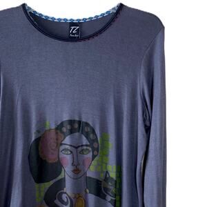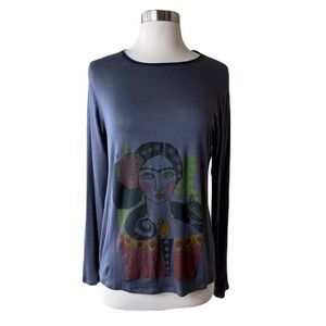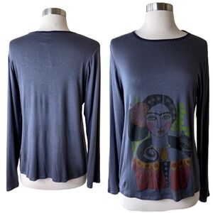 T.ZOVICH Top Frida Kahlo Graphic Print Long Sleeves Graphic Print Gray Small NWT
