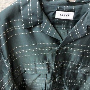 Taakk Mens Size Medium Green Textured Jacket Collared Short Sleeve NWOT *sample
