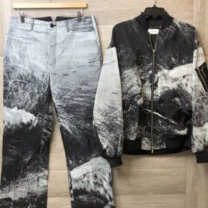 Taakk Mens Size Medium White Jacquard Nylon Flat Front Jacket Pants Set NEW *sample