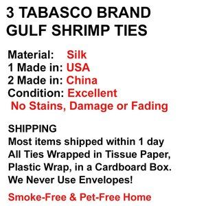 Tabasco Silk Ties – Gulf Shrimp Theme - EUC
