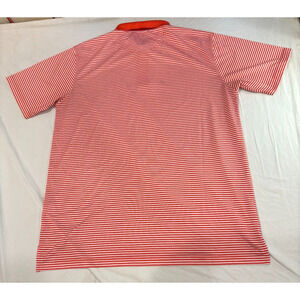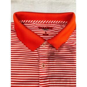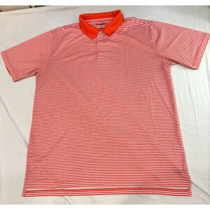 Tabasco Sport Polo Shirt Men's Size L Golf Wicking Short Sleeved Striped Orange