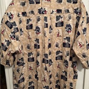 I’m pretty sure this is a vintage hard to find pattern. 100% cotton. Shirt is XL but please see measurements posted. Great condition