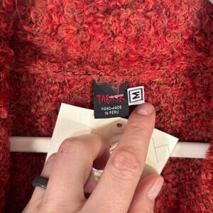 Tabask Shawl Cardigan Sweater Medium Alpaca Wool Nubby Fuzzy Artsy Boiled Rust Burnt Blaze Orange Open Peru Lagenlook Grandpa