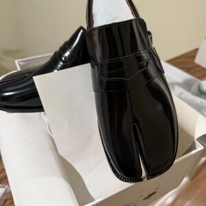 The Tabi loafer in brushed leather with stitch detailing features the Tabi split-toe, inspired by the traditional 15th century Japanese sock bearing the same name – launched for the Maison's debut collection in 1989. It captures the avant-garde and insubordinate spirit of the Maison and exists as a heritage classic, continually explored through each collection. Size EU 39 US 8 Genuine Leather