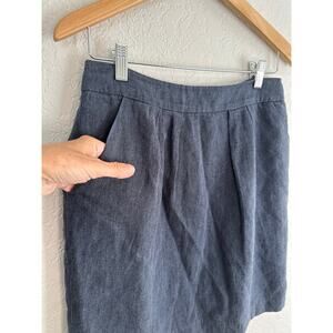 Tabitha Anthropologie Blue Linen Skirt Size 6 Academia Mini School Twee Pockets