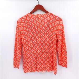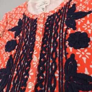 Tabitha Anthropologie Cardigan Medium Orange Floral Fine Knit Embroidery Brunch