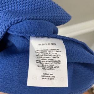 Neck has hidden hook and eye closure. Hidden back zip. Unlined. Pockets!