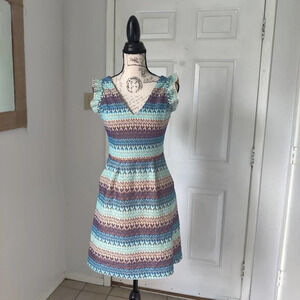 Tabitha Anthropologie Summer Dress Sz 2 Blue Lace Short Sleeve V-Neck Cocktail