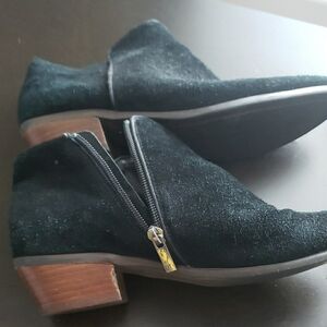 Experience the perfect blend of style and comfort with Tabitha's black ankle booties. Crafted with a sleek design, these booties feature elastic side panels for easy slip-on wear. The low heel and rounded toe make them ideal for everyday versatility, while the soft suede texture adds a touch of elegance to any outfit.